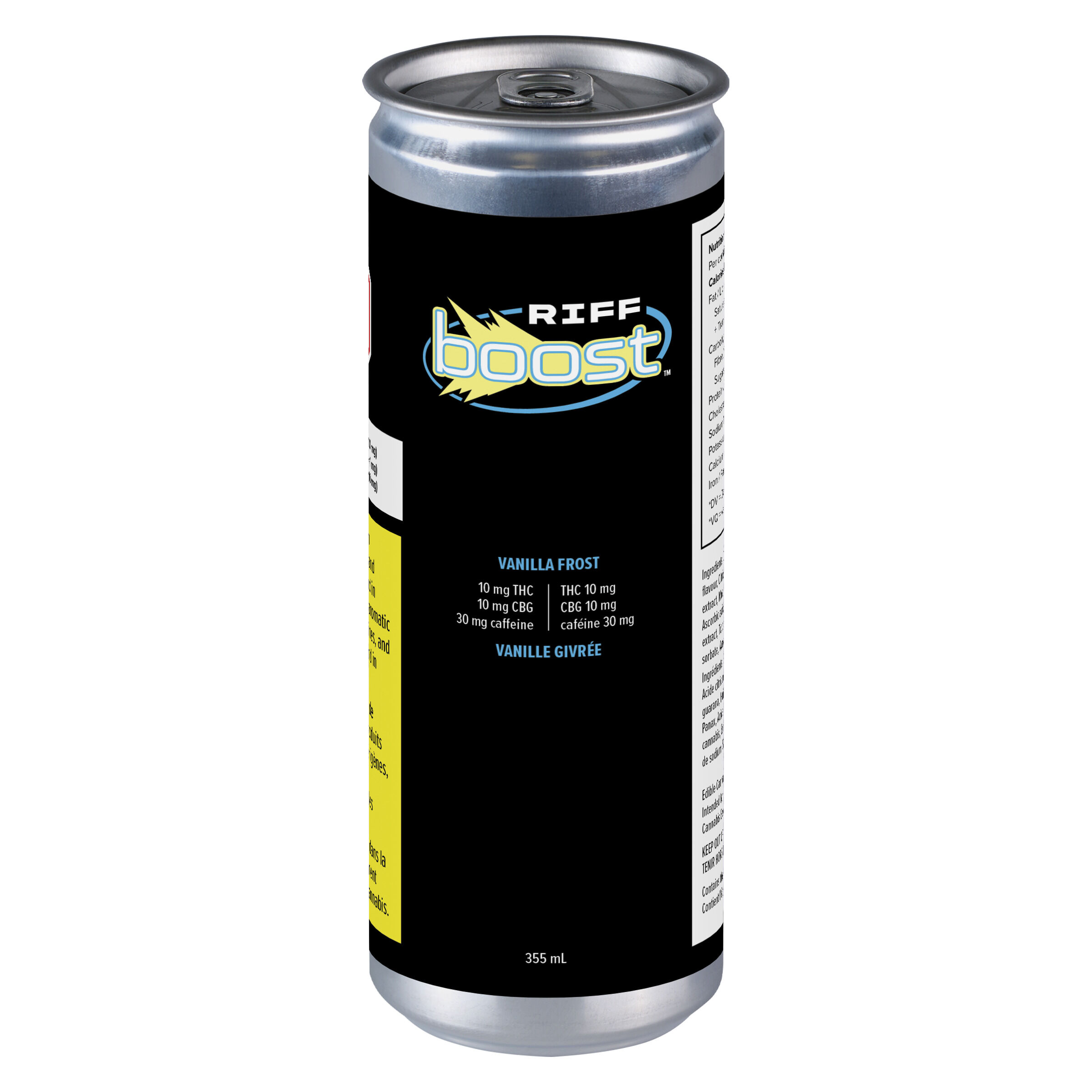 Lift off with Vanilla Frost cannabis-infused drinks. It's a classic cream soda flavour boosted with 10mg each of nano-emulsified THC and CBG, 30mg of caffeine and guarana and ginseng extract for an extra punch. It's elevated focus in a can that's crafted for maximum taste and zero cannabis aftertaste. Spark something new with RIFF BOOST cannabis-infused energy drinks.