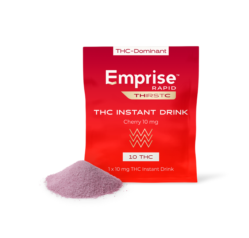 Emprise Rapid THirstC Cherry 10mg THC Instant Drink is ready when you are, add to 250ml of Water and consume. Each sachet contains 10mg of Advanced Nano THC Emulsion that has a rapid onset in as little as 10-15 minutes.