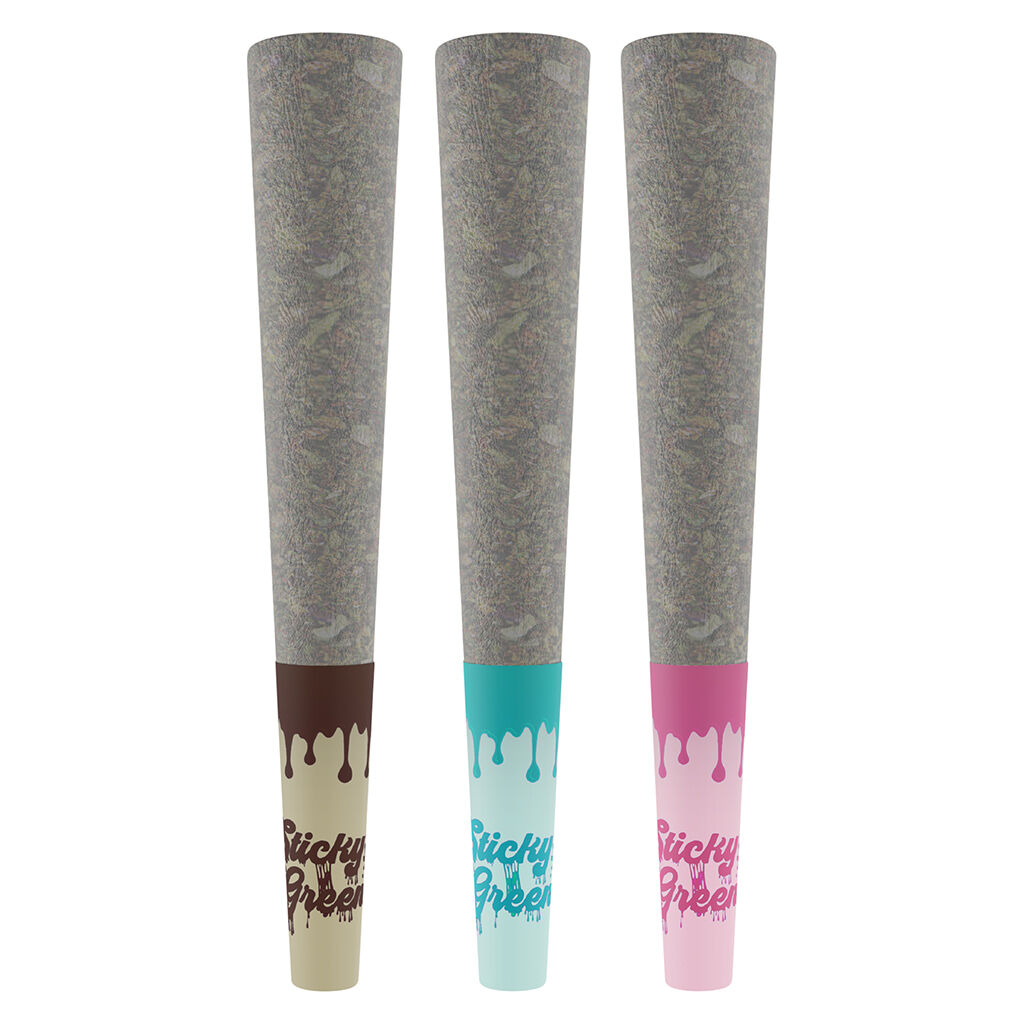 Experience 3 different unique infused pre roll offerings in one pack that recreate the nostalgic flavour experience you get with every Sticky Greens vape! Sticky Greens' Disti Sticks deliver a uniquely flavoured pre roll experience through combining high quality flower with the same distinctly flavoured distillate that customers across Canada have come to know and love. We carefully inject our high potency distillate and naturally derived terpenes into the centre of the pre roll in order to ensure an explosion of flavour from start to finish.